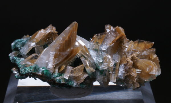 光沢感があり透明な板状バライトが成長した標本です。